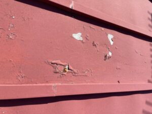 現地調査を行ったところ、塗膜剥がれに加えて、ところどころに錆が出ていたため塗り替えをご提案致しました。